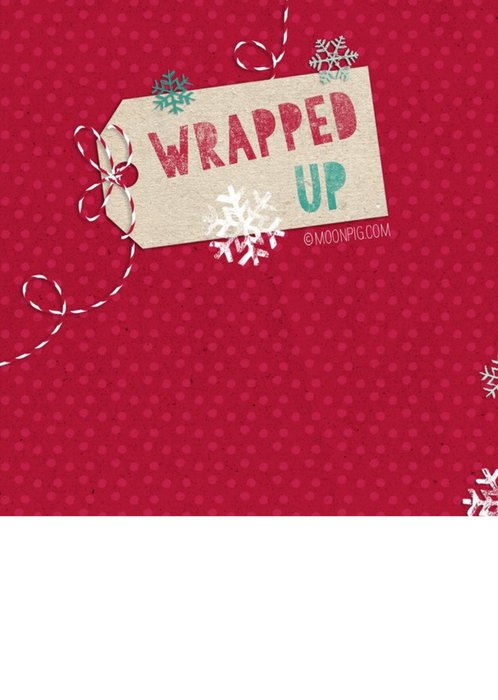 Front of card: Large photo upload that fille the top half of the card. at the bottom of the photo upoad are lots of snowflakes layered on top of each other against a red, polka dot background.