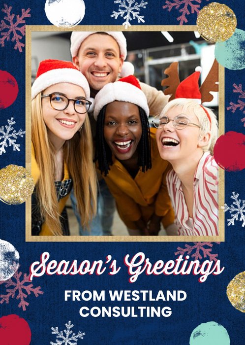 Snowflakes Pattern Corporate Season's Greetings Photo Upload Card