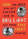 "Son, no idea how you turned out so brilliant but taking full credit anyway!"