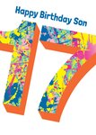 Front of card: Featuring a large number 17 with a vibrant paint splatter effect. Text reads: "Happy birthday son 17". 'Happy birthday son' can be personalised!