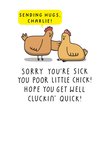 "Sending hugs, Charlie! Sorry you're sick you poor little chick! Hope you get well cluckin' quick!"