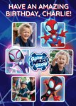 "Have an amazing birthday, Charlie glow webs glow". 'Have an amazing birthday, Charlie' can be personalised!