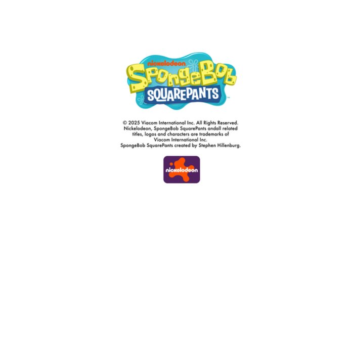 Featuring illustrated SpongeBob SquarePants, Patrick Star and Gary the Snail in a joyful celebratory pose, surrounded by small sparkles. The bold text appears above and below the characters. The scene sits on a deep blue background.