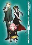 Featuring an illustration of three Spy x Family characters; Anya Forger, Yor Forger & Loid Forger.