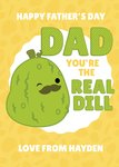 "Happy Father's Day Dad, you're the real dill, love from Hayden."