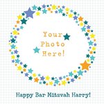 Star Circle Framed Personalised Photo Upload Happy Bar Mitzvah Card