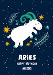 "Aries happy birthday Alexis". 'Alexis' can be personalised!