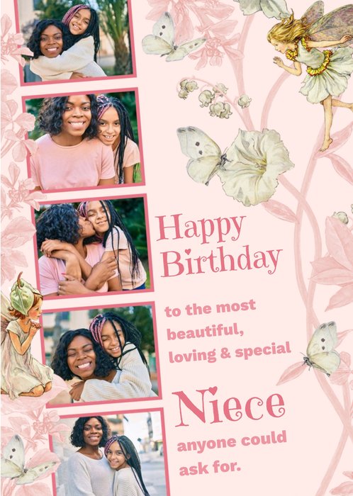 Stripes And Flower Border Personalised Photo Upload Birthday Card For Niece