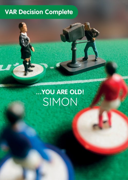 "VAR decision complete …you are old Simon". 'Simon' can be personalised!