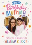 Text reads: "Happy Birthday Mummy from your favourite alarm clock."