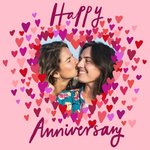A adoring and sweet Photo Upload Anniversary card featuring a heart-shaped photo frame made up of hand-drawn, sketchy love hearts.