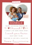 "You're the missing piece of my heart I cannot live when we're apart, I need you here right next to me, together in life we'll always be. Happy Anniversary."