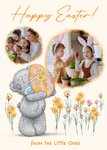 Featuring a cute illustration of Tatty Teddy with an easter egg and two circular photo frames.