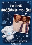 'Husband to be!' -fixed text, 'Congratulations Gareth!' -this can be personalised!