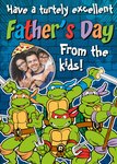 Front of card: Teenage Mutant Ninja Turtles Photo Upload Father's Day Card Featuring the Teenage Mutant Ninja Turtles. Text reads: "Have a turtely excellent Father's Day from the kids!".