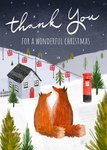 Front of card: Featuring an illustration of a pair of foxes overlooking a wintry scene. Text reads: "Thank you for a wonderful Christmas". 'For a wonderful Christmas' can be personalised!