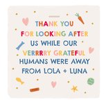 "Thank you for looking after us while our very grateful humans were away, from Lola + Luna."