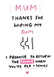 Thanks for Wiping My Bum Funny Mother's Day Card