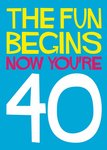 The Fun Begins Now You're 40 Typographic Birthday Card