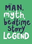 This bold and playful Father’s Day card features quirky handdrawn lettering in navy and white on a vibrant green background. It celebrates Dad’s ultimate legendary status—especially when it comes to bedtime storytelling.