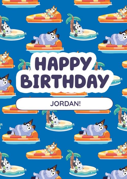 This modern, colourful design features Kermit the frog framed by a heartfelt Birthday message featuring an editable name. The design sits on a blue background scattered with stars, swirls and a bow.