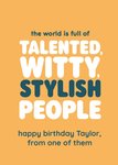 The World Is Full Of Talented Witty Stylish PeopleTypographic Birthday Card