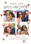“Happy 10th anniversary to a wonderful sister and husband”. 'Happy 10th' and 'to a wonderful sister and husband' can be personalised!