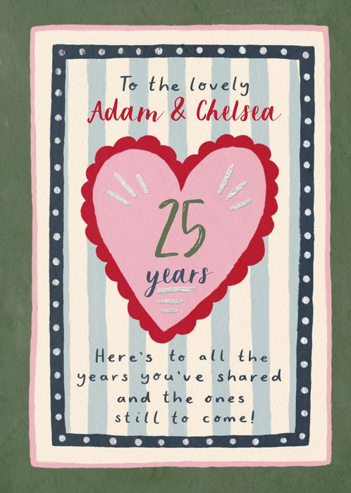 "To the lovely Adam & Chelsea 25 years. Here's to all the years you've shared and the ones still to come!"