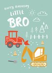 Tractor And Digger Little Bro Birthday Card