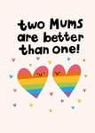 Featuring an illustration of two hearts with rainbow patterns on a cream coloured background.