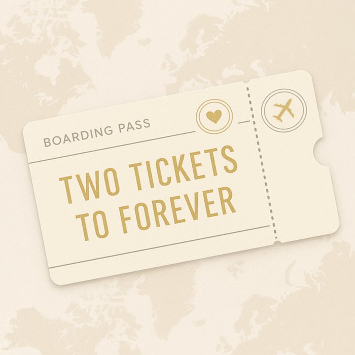 "Boarding pass, two tickets to forever."