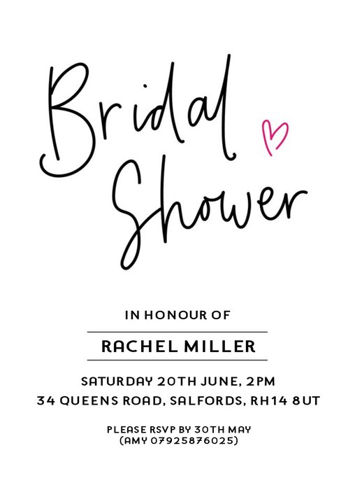 Typographic Bridal Shower Invitation Card