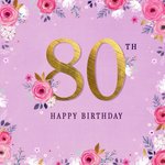 Typographic Design Floral On Your 80th Birthday Wishes Card