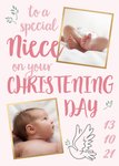 Typographic Photo Upload Niece Personalise Date Christening Card