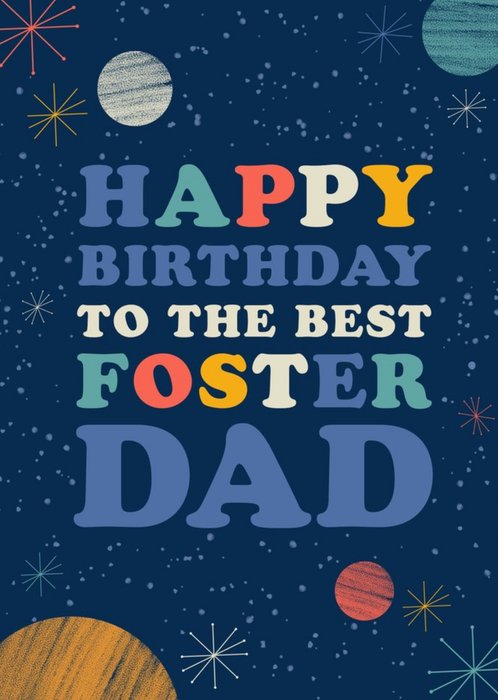 Typographic Space Illustration Happy Birthday To The Best Foster Dad Card