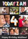 Typographic Today I Am 4 Photo Upload Birthday Card