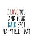 Typographical Funny I Love You And Your Bald Spot Happy Birthday Card