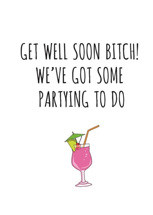 Typographical Get Well Soon Bitch Weve Got Some Partying To Do Card