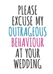 Typographical Please Excuse My Outrageous Behaviour At Your Wedding Card