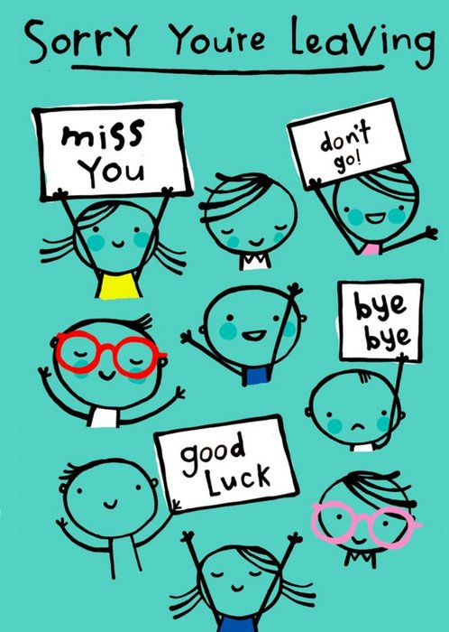 "Sorry you're leaving, Miss you, Don't go!, Bye bye and Good Luck".