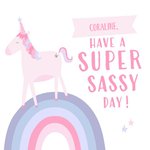 Unicorn And Rainbow Have A Super Sassy Day Personalised Card