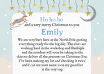 Inside of card: Ho ho ho, and a very Merry Christmas to you Emily. We are very busy here at the North Pole getting