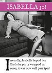 "Isabella 30!" and "Inwardly, Isabella hoped her Birthday party wrapped up soon, it was now well past 8pm!". 'Isabella 30!' and 'Isabella' can be personalised!