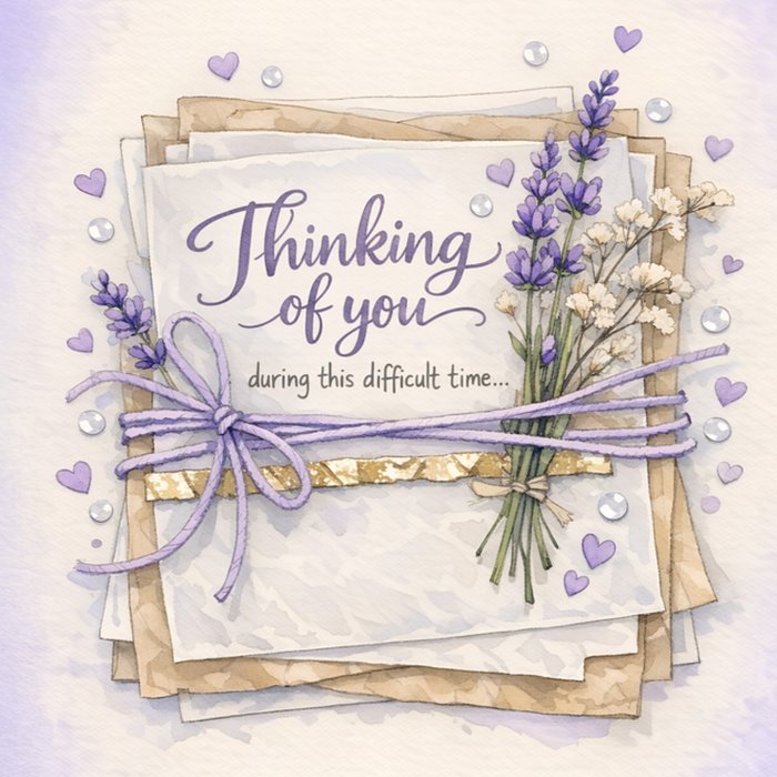 Watercolour Hand Crafted Notes And Lavender Sympathy Card