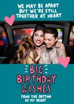 "We may be apart but we're still together at heart. Big birthday wishes from the bottom of my heart."