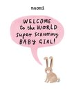 Welcome To The World Illustrated Bunny Rabbits Cute New Baby Girl Card