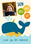 Whale Son Happy Birthday Photo Upload Card