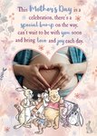 Text reads: "This mother's day is a celebration, there's a special bump on the way, can't wait to be with you soon and bring love and joy each day.".