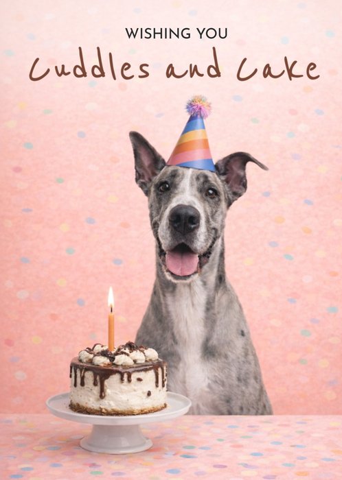 Wishing You Cuddles And Cake Cute Dog With Party Hat Card