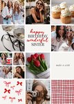 Front of card: Features a grid format of 15 squares. Each square features a mix of images, red themed illustrations and typography. There are 8 photo upload frames.